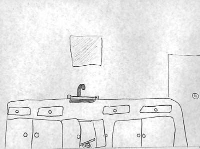 Jacob looks out of his hiding place under the sink.